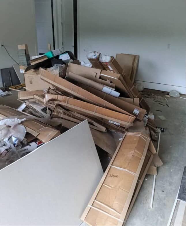 Construction materials, drywall, wood, and renovation waste hauled away properly.